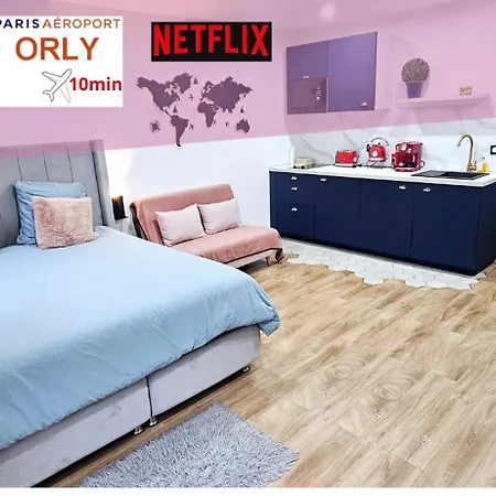 오를리의 손님들은 Escapade Parisienne - Paris Orly 아파트 아파트에 즐겁게 머물 수 있습니다. 이 아파트는 부엌, 1개의 침실과 1 개의 욕실을 갖추고 있습니다.