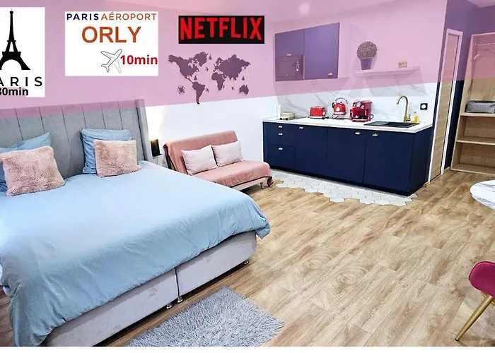 Parc Interdépartemental des Sports Paris Val-de-Marne는 아파트에서 4.6km 거리에 있으며 릴라/리라 주립공원은 약 4.7km 떨어져 있습니다. La Creperie Du Marche 식당은 아파트에서 600m 떨어져 있으며 프랑스 요리를 제공합니다. 이 아파트는 Eglise Saint-Germain d'Orly 인근에 있습니다.